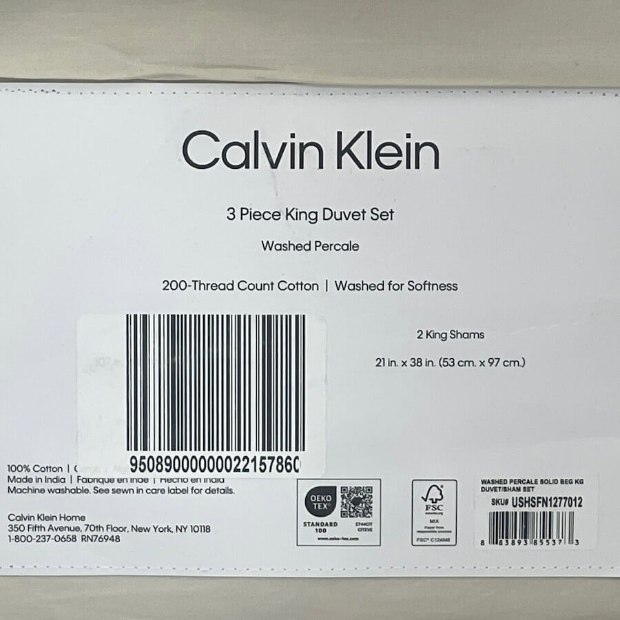 Calvin Klein Washed Percale Solid 3 Piece King Duvet Set
