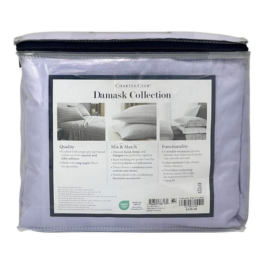 Charter Club Damask Stripe 4 Piece Full Sheet Set Lilac