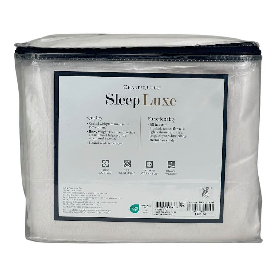 Charter Club Sleep Luxe Flannel 4 Piece Full Sheet Set Cream