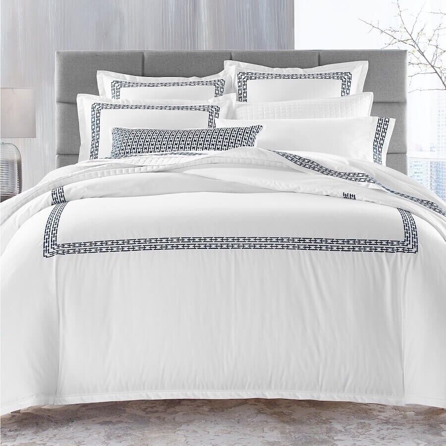 Hotel Collection Chain Link Embroidery Euro Sham Navy Blue