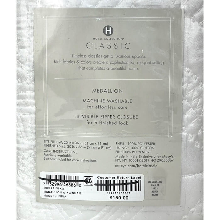 Hotel Collection Classic Medallion Quilted King Sham White
