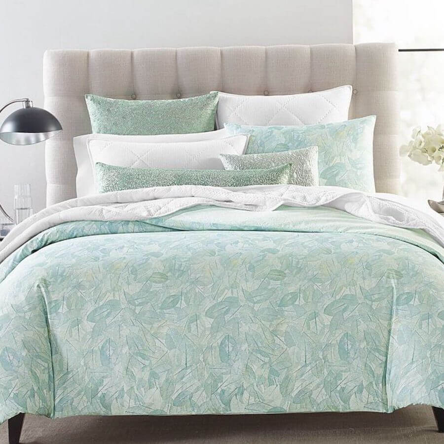 This european sham features stunning, full-coverage embroidery and a modern allover textural motif on a beautiful moss green sateen.