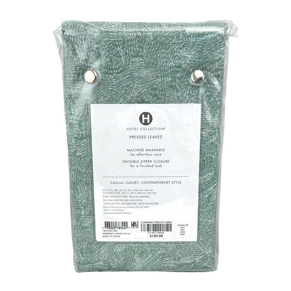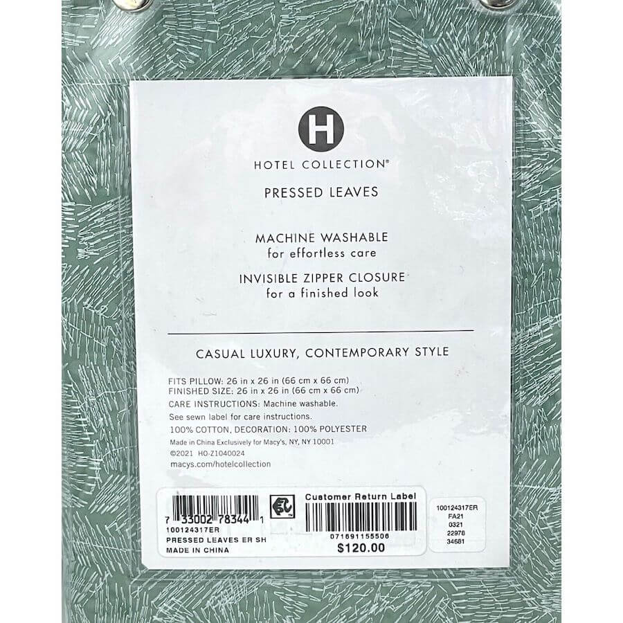 Hotel Collection Pressed Leaves Embroidered Euro Sham Green