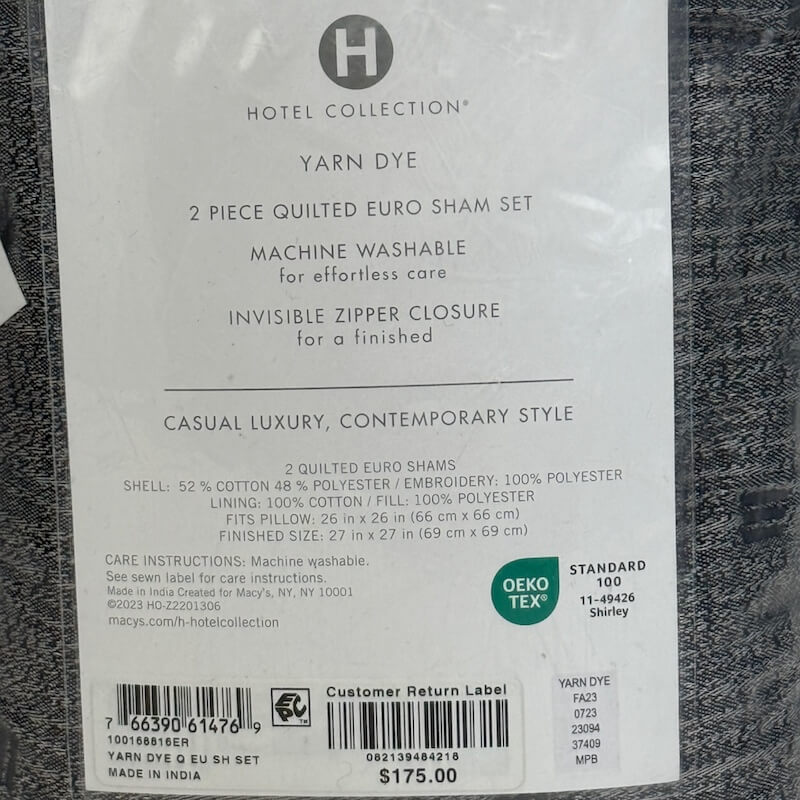 Hotel Collection Yarn Dye Quilted Euro Sham Set Charcoal
