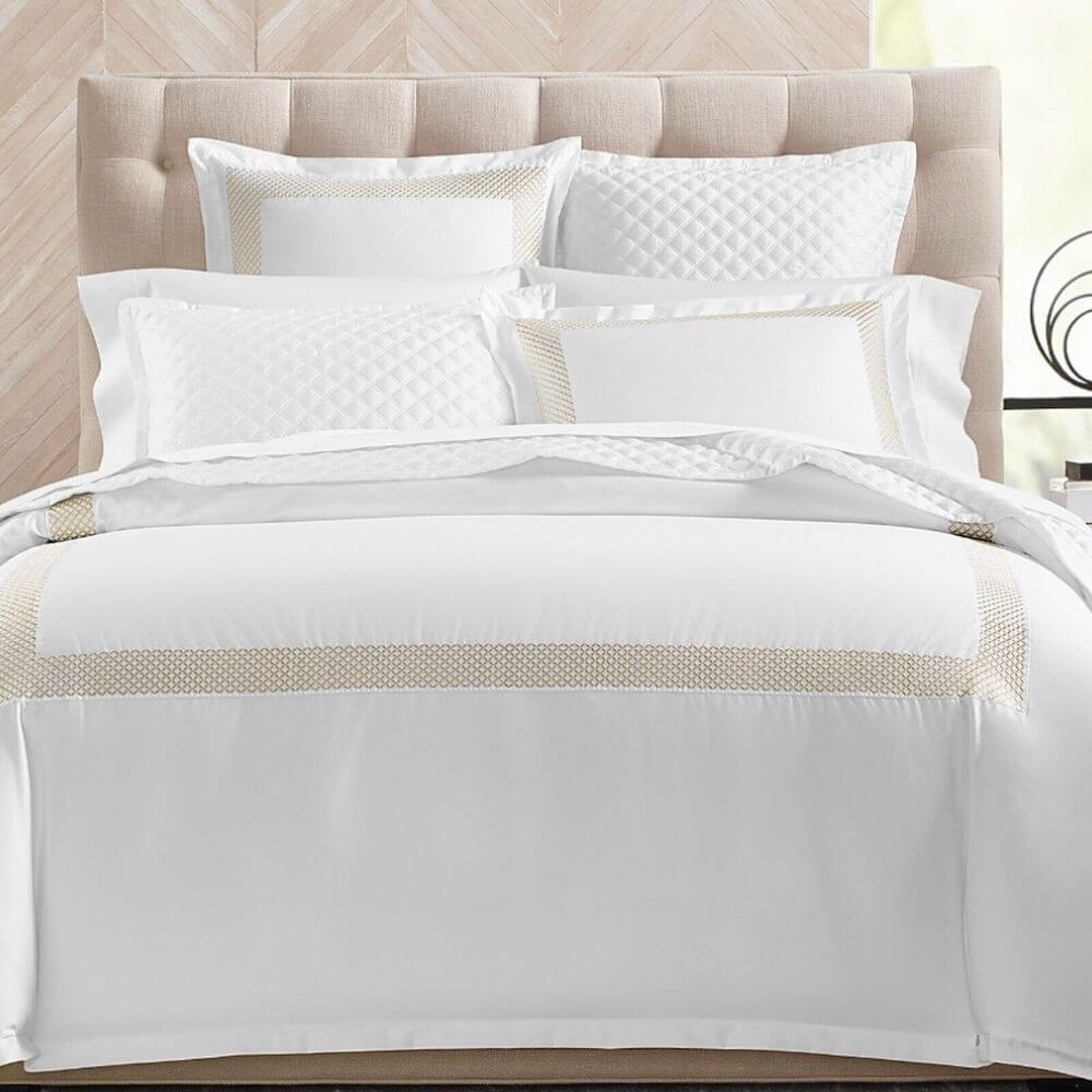 Upgrade to modern elegance with Hudson Park Collection’s wrinkle-resistant sham, featuring embroidered trellis borders and diamond details.