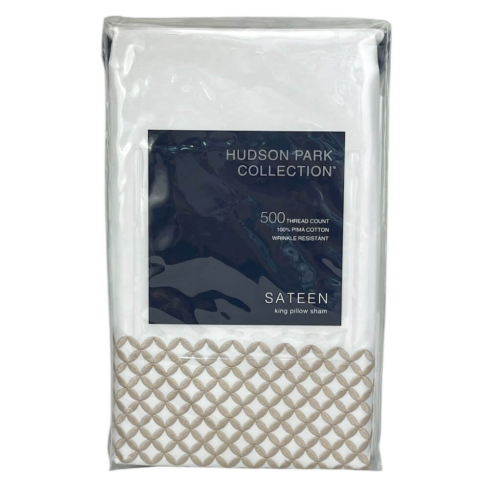 Hudson Park Embroidered Geo King Sham White/Sand