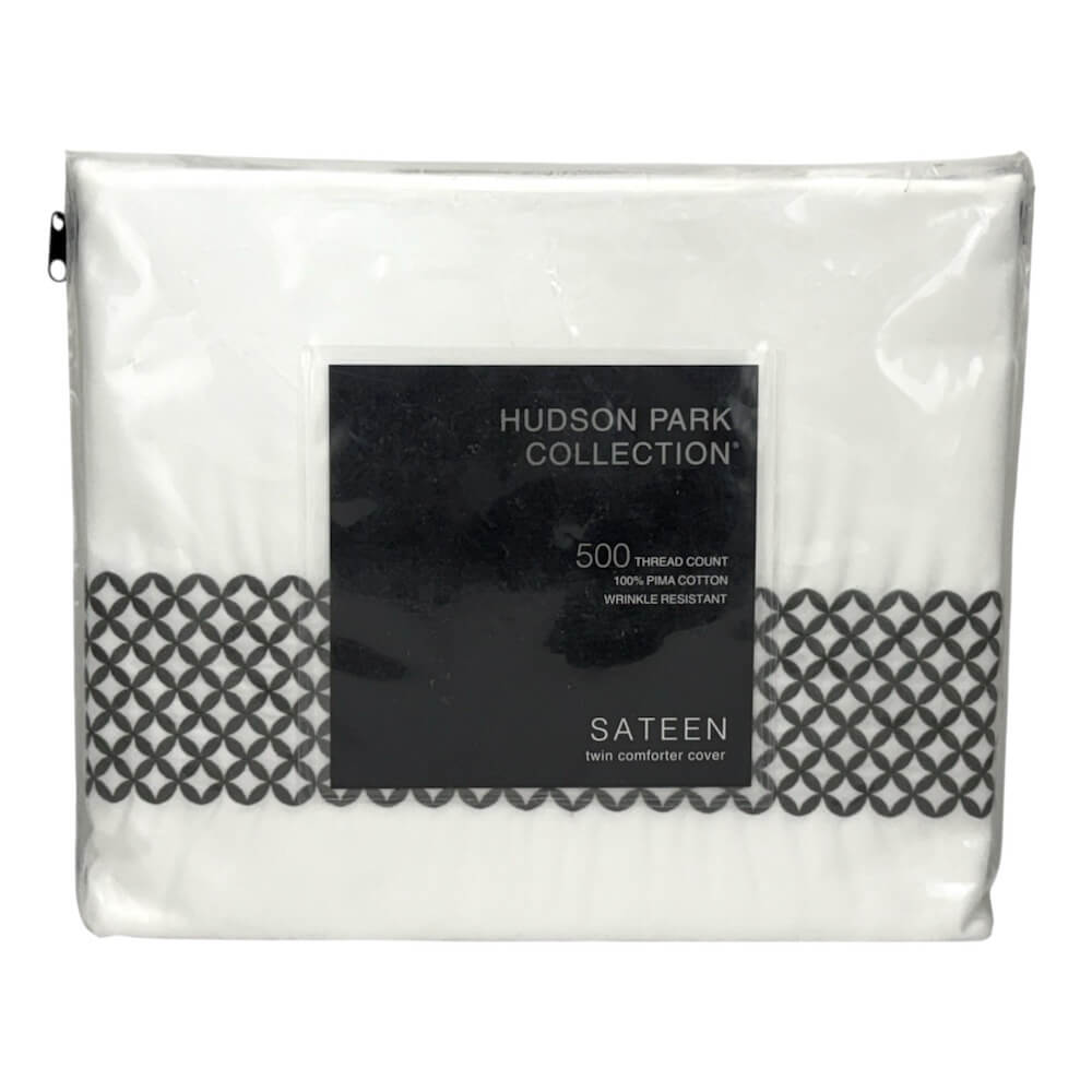 Hudson Park Embroidered Geo Twin Duvet Cover White/Charcoal