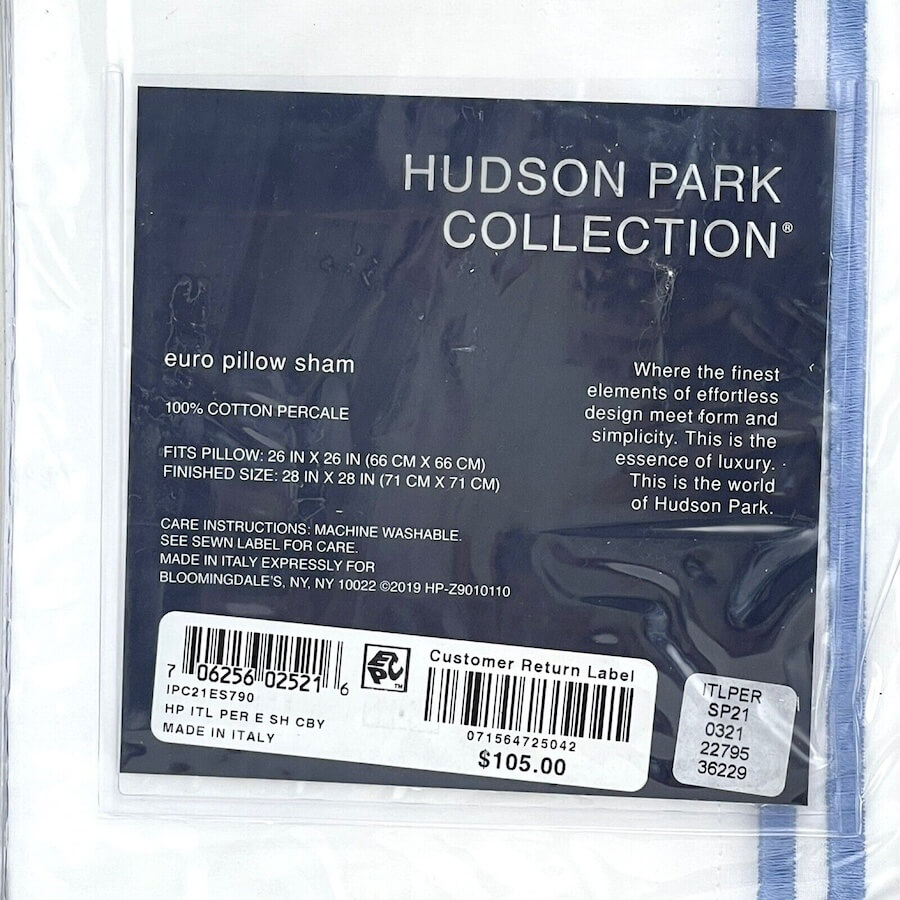 Hudson Park Italian Percale Euro Sham Chambray Blue on White