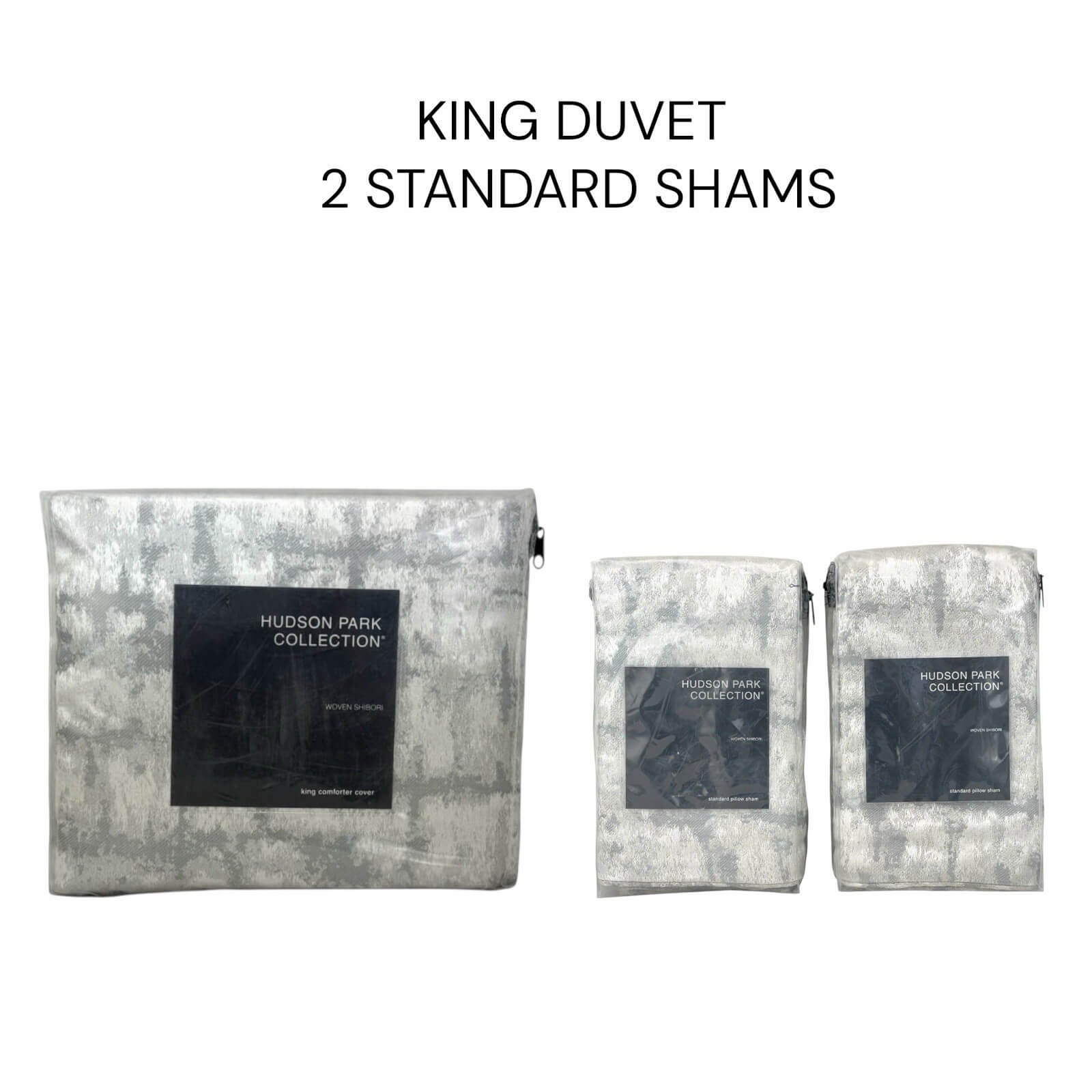 Hudson Park Shibori KING Duvet & 2 STANDARD Shams Light Slate