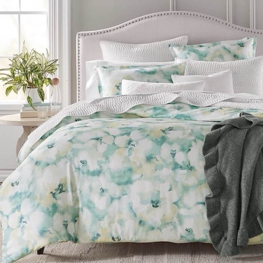 Soft and ethereal, the Freya Inky Floral bedding collection from Sky features a watercolor inspired floral print with rich hues that bring a fresh, artistic touch to any bedroom.