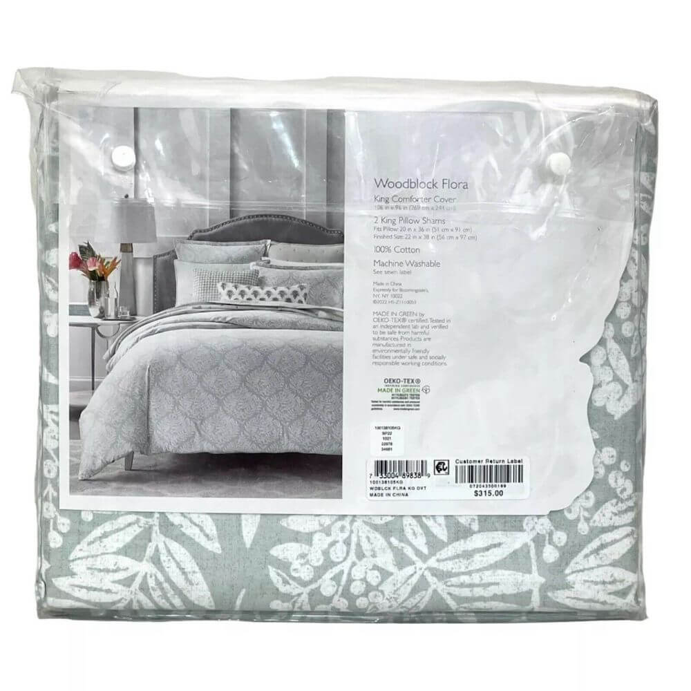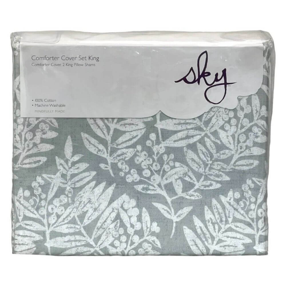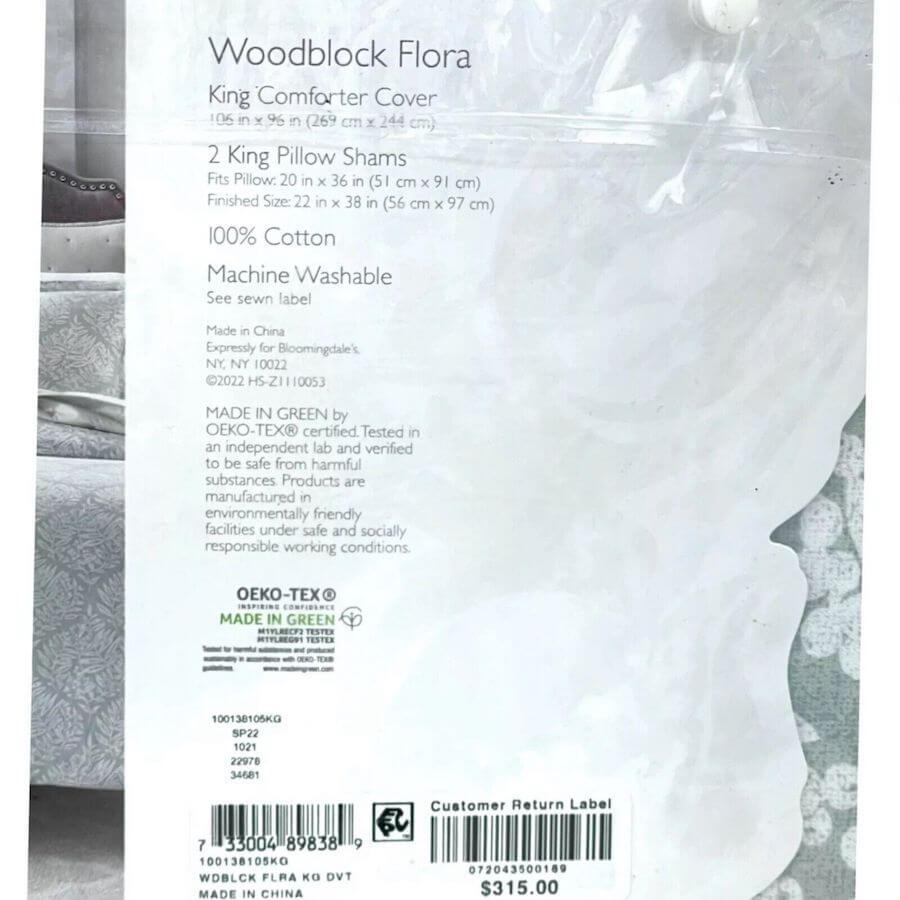 Sky Woodblock Flora 3 Piece King Duvet Set Gray